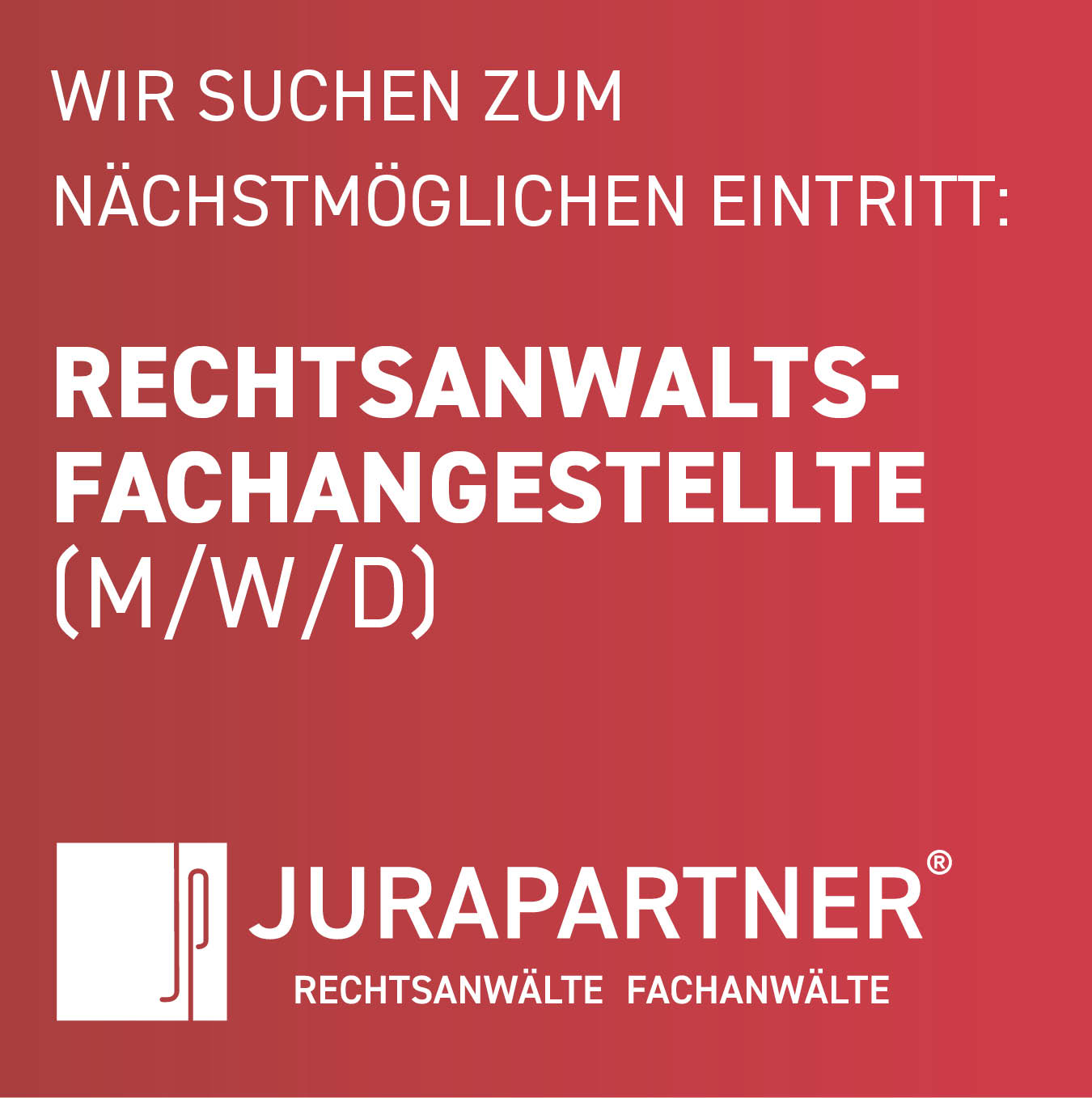 Wir freuen uns auf Ihre Bewerbung, die Sie bitte per Email unter Angabe Ihrer Gehaltsvorstellung z.Hd. Herrn Rechtsanwalt Ralf Alexander Muhs (muhs@jurapartner.de) richten.